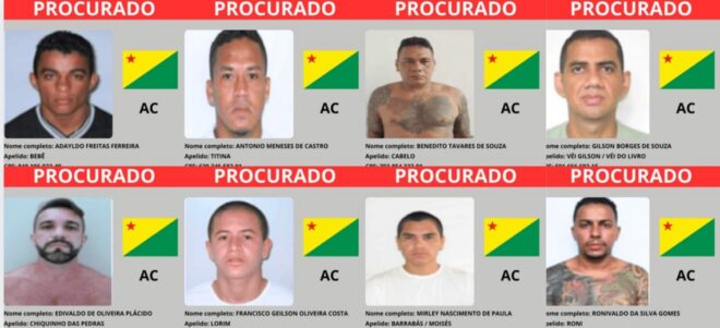 O Acre indicou oito procurados para a lista, que segue critérios nacionais de periculosidade e impacto regional. Foto: art