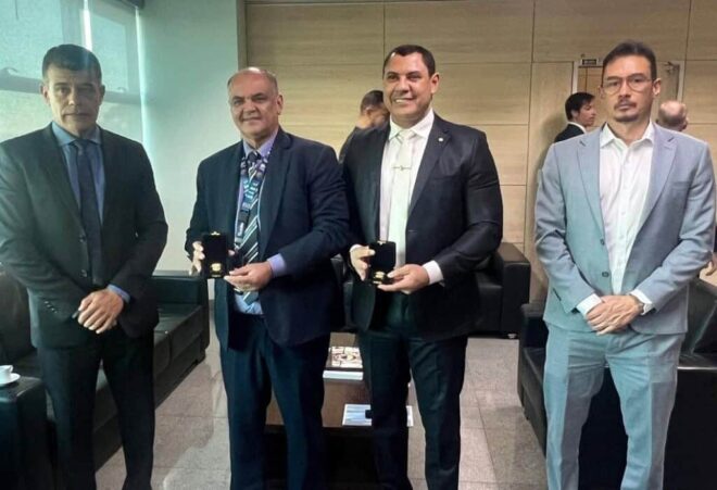 Além da visita institucional, Henrique Maciel e Ulisses de Araújo foram agraciados pela Polícia Civil do DF com uma medalha institucional, fortalecendo a parceria estadual das instituições. Foto: