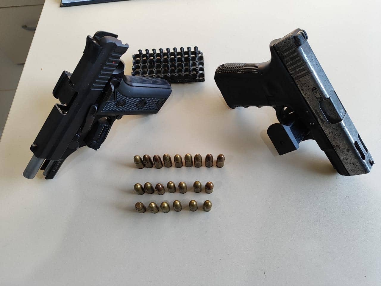 Polícia Civil apreende uma pistola de 9 milímetros e uma arma calibre 380 furtada, durante operação em Mâncio Lima. Foto cedida.