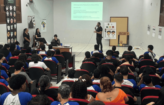 Em uma iniciativa voltada para a orientação da comunidade escolar sobre a prevenção e combate a crimes contra crianças e adolescentes, a Polícia Civil do Estado do Acre (PCAC), por meio da A Delegacia de Atendimento à Criança e ao Adolescente Vítima (DECAV), realizou uma ação educativa na Escola Humberto Soares, em Rio Branco, na última sexta-feira, 29. A iniciativa atendeu cerca de 300 estudantes, com idades entre 14 e 20 anos, matriculados no 2º e 3º anos do ensino médio.