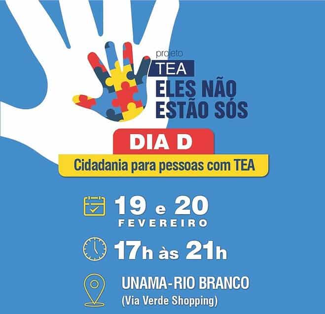 A Polícia Civil do Acre (PCAC), em parceria com o Ministério Público do Acre (MPAC), anuncia uma iniciativa pioneira visando a inclusão de Pessoas com Transtorno do Espectro Autista (TEA). A ação ocorrerá nos dias 19 e 20 de fevereiro, das 17 às 21 horas, no Via Verde Shopping.