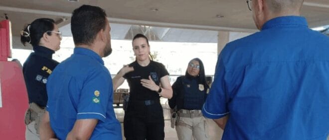 Palestras da Operação Shamar e campanha Agosto Lilás abordaram tipos de violência, medidas protetivas e canais de denúncia dentro dos veículos; ação foi convidada pela PRF
