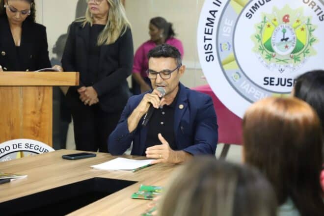 Durante sua fala, o delegado-geral Henrique Maciel destacou o compromisso da Polícia Civil com políticas de proteção e o fortalecimento das estruturas especializadas no atendimento às mulheres vítimas de violência.