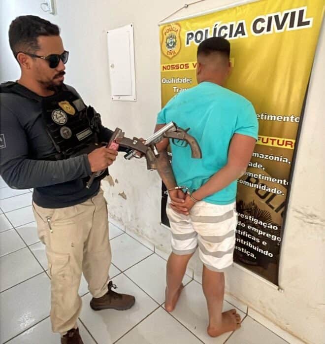 Polícia Civil do Acre apreende armas, drogas e prende foragido acusado de dois homicídios em Assis Brasil. Foto: cedida