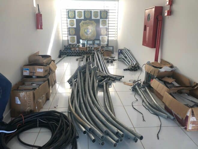 Investigado armazenava em sua residência suportes metálico e luzes de LED furtados de vias públicas. Ao todo, estima-se que os bens públicos recuperados totalizam um valor aproximado de R$ 120.000,00 (cento e vinte mil reais).