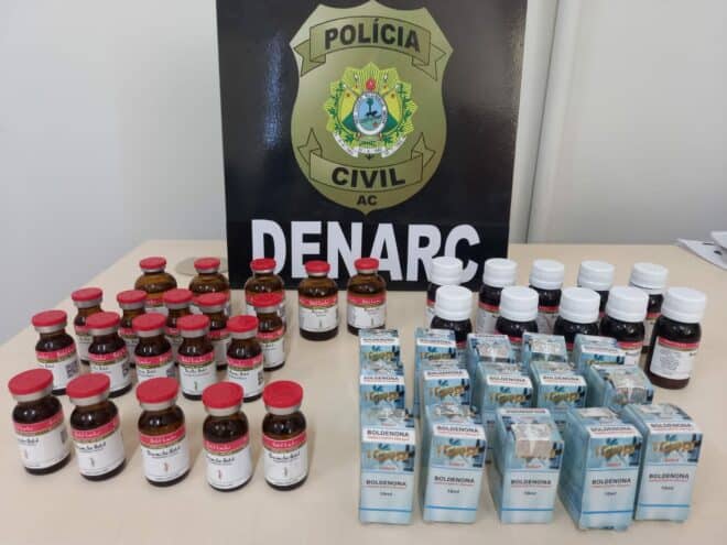 Foram aprendidas vários frascos de supostas substâncias falsificadas de Testosterona, boldenona, stanolozol, oxandrolona.