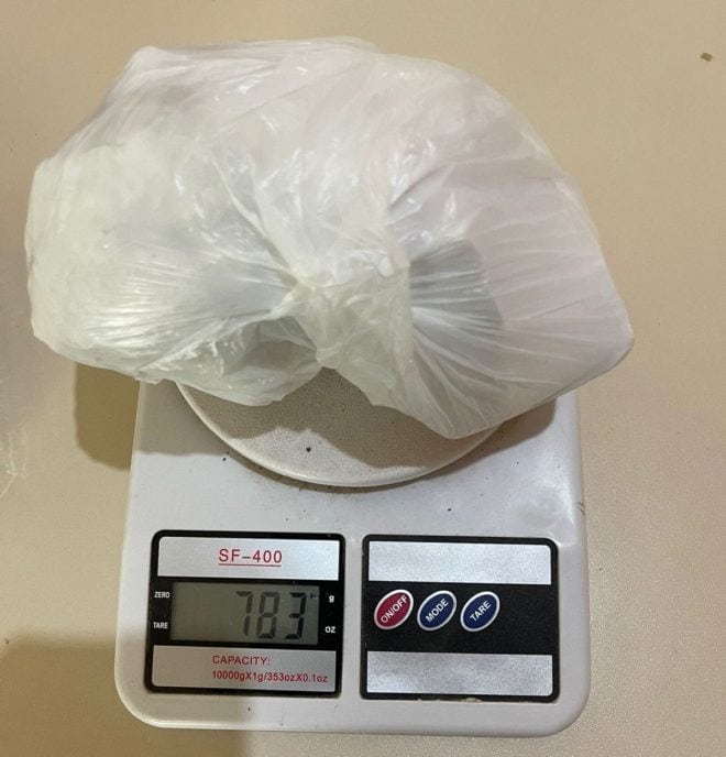 O investigado trazia em uma mochila preta mais de um quilo de maconha e 783 gramas de pedra de oxidado de cocaína, totalizando 1 quilo e 801 gramas de drogas no total. Ao receber voz de prisão, o investigado disse que recebeu a quantia de R$ 800,00 para transportar a droga ate a cidade de Tarauacá.