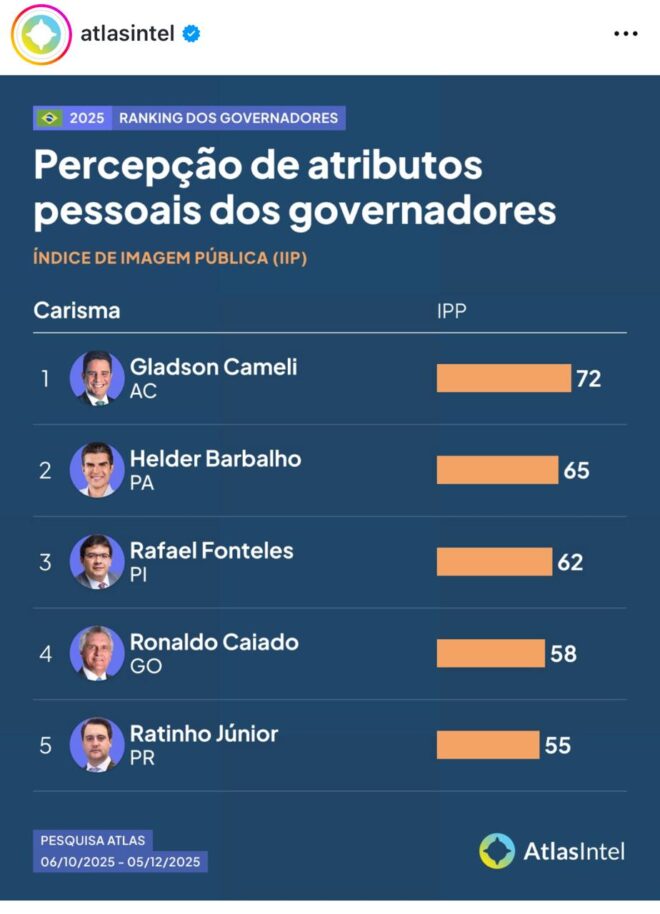 Especialistas em comunicação política apontam que o carisma tem impacto direto na consolidação de lideranças, na sustentação de capital político e na capacidade de diálogo com diferentes segmentos sociais. Nesse contexto, a liderança de Gladson no ranking sugere vantagem simbólica importante para o Acre no debate nacional.