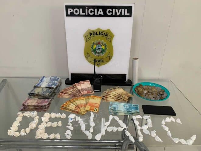 Na ocasião foi localizado e apreendido na residência do autor certa quantidade de entorpecente do tipo cocaína e também oxidado de cocaína, motivo pelo qual o homem recebeu voz de prisão, sendo conduzido à Delegacia de polícia civil, onde foi apresentado em perfeitas condições físicas.