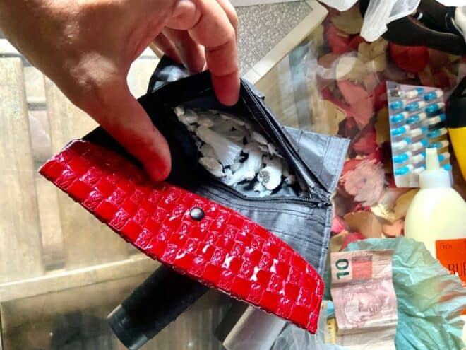 O trabalho investigativo possibilitou apreender em posse da investigada R$ 700,00 (setecentos reais) em dinheiro, 34 trouxinhas aparentemente sendo cocaína, 103,8 gramas de cloridrato de cocaína, material de embalagem, 02 aparelhos celulares, e três bermudas produto de receptação.