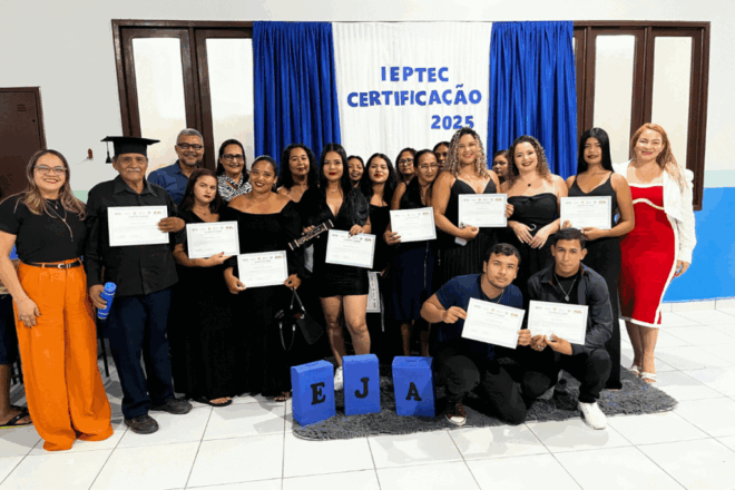 Em se tratando da EJA, a categoria de ensino foi incluída no Ieptec em 2024 e atende pessoas que não acessaram à educação na idade certa ou precisam retomar os ensinos fundamental e médio. Neste mesmo ano, o instituto qualificou 1.747 alunos da EJA em 17 municípios. Em 2025 são atendidos 3.335 alunos em 21 cidades do Acre, um aumento de 90,9% em apenas um ano.