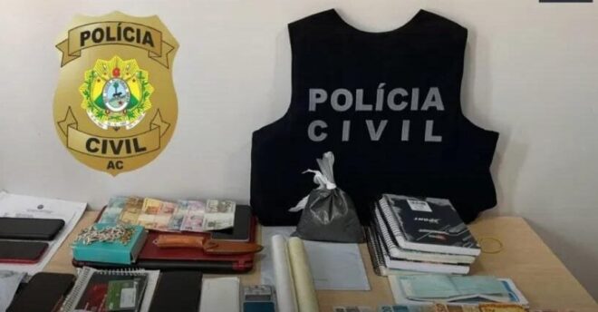 A Polícia Civil de Feijó prendeu três pessoas na manhã desta quinta-feira (18) durante operação que cumpriu mandados de prisão e busca relacionados ao desaparecimento de Misael. Coordenada pelo juiz Robson, a ação apreendeu celulares, notebooks, pendrives, cadernos de anotações, cheques, quantia em dinheiro e materiais para embalo de drogas – incluindo balança de precisão e chumbo. Todo o material será periciado.