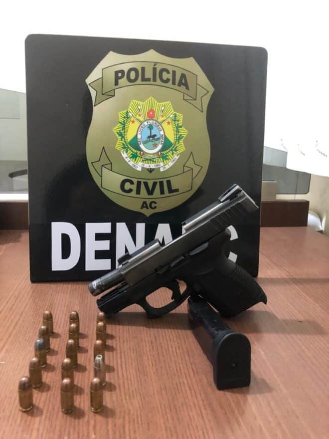 O trabalho investigativo da equipe da DENARC também logrou êxito em descobrir que a pistola foi roubada de um comerciante que a possuía de maneira legal.