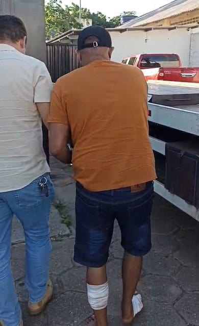 Após diligências e trabalho investigativo, a equipe da DCORE conseguiu localizar o veículo na região do Bosque, sob a posse de Francisco Leonardo Brasil. Ao perceber a aproximação dos policiais, o suspeito tentou fugir, pulando muros e passando por telhados de residências, momento em que sofreu ferimentos nas pernas provocados por cortes.