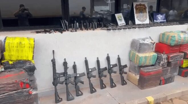 Policiais apreenderam 75 pistolas, 7 fuzis e 2 toneladas de maconha