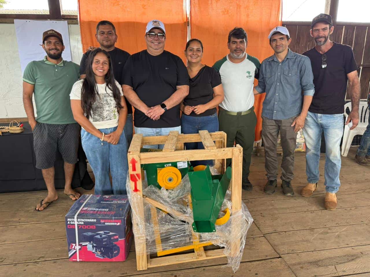 A agenda começou no ramal Santa Luzia, KM 84, na Comunidade Palmeiras. Acompanhado pelo novo secretário municipal de Agricultura, Gesiel Moreira, e pelo secretário de Obras, Josué Oliveira, o prefeito realizou a entrega de um triturador de grãos e de um motor, equipamentos que irão auxiliar diretamente os produtores locais no processamento da produção agrícola.