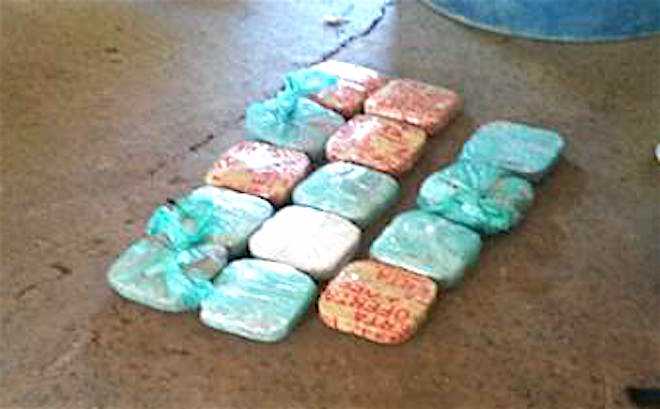 Em continuidade das diligências, foram realizadas buscas na chácara de um dos ocupantes do veículo. Os cães farejadores do Batalhão de Operações Especiais da Polícia Militar/AC auxiliaram nas buscas. Na chácara, foram localizados mais 14 Kg de cocaína escondidos no forro da casa. Os ocupantes do veículo admitiram a propriedade da droga e informaram ter adquirido no município de Cruzeiro do Sul.