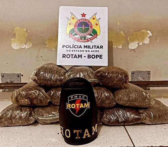Equipe de Rondas Ostensivas Tático Móvel (Rotam/Bope), da Polícia Militar do Acre, apreendeu na madrugada desta sexta-feira, 17, aproximadamente sete quilos de maconha no Conjunto Habitacional Cidade do Povo. Durante a ação policial, as pessoas que estavam com o entorpecente conseguiram se evadir.