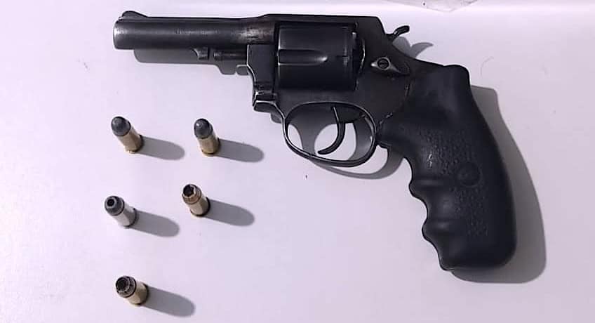 A arma, um revólver calibre .38 com cinco munições intactas, foi apresentada na delegacia para as providências cabíveis.