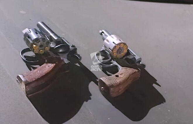 A intensificação das ações policiais em resposta à onda de ataques promovidos por facções criminosas resultou na prisão de dois homens e na apreensão de duas armas de fogo na noite deste domingo (13), no bairro Eldorado, em Brasiléia, na noite deste domingo, dia 13, por uma guarnição do Grupo de Intervenção Rápida e Ostensiva (GIRO), do 5º Batalhão da Polícia Militar.