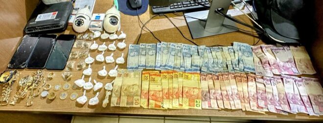 Militares do 4° Batalhão de Polícia Militar apreenderam entorpecentes, dinheiro, celulares e jóias, no domingo, 25, em Senador Guiomard.