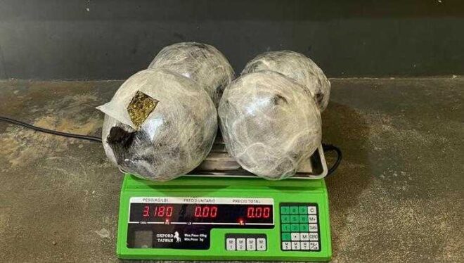 Na delegacia foi possível realizar a pesagem da droga, sendo totalizado 3 quilos e 180 gramas.