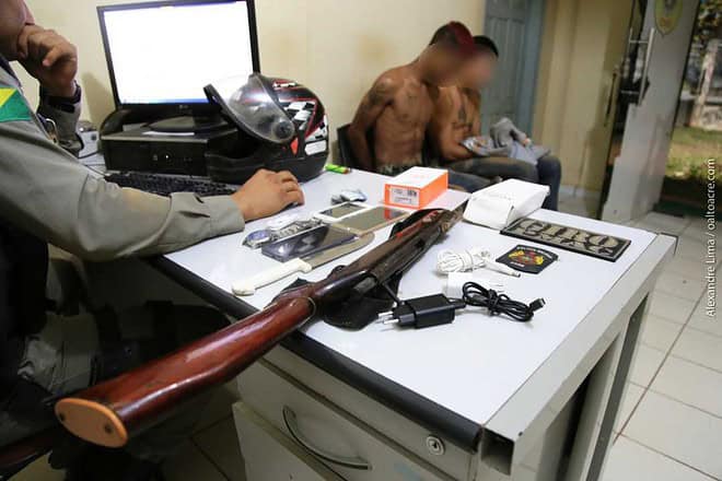 Um dos menores já é conhecido no mundo do crime. Os celulares, o rifle sem munição e a moto, juntamente com os infratores, foram conduzidos para a delegacia, onde seria realizado os procedimentos cabíveis.