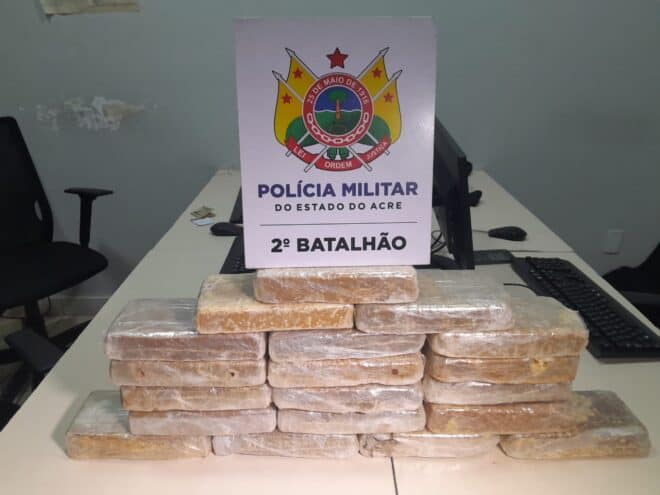 Uma ação rotineira do Grupamento Tático do 2° Batalhão da Polícia Militar resultou na apreensão de 18,79 quilos de crack na noite deste sábado (29). A droga foi encontrada em uma caminhonete F-1000 durante patrulhamento na Rodovia AC-40, em frente ao Parque de Exposições Wildy Viana.