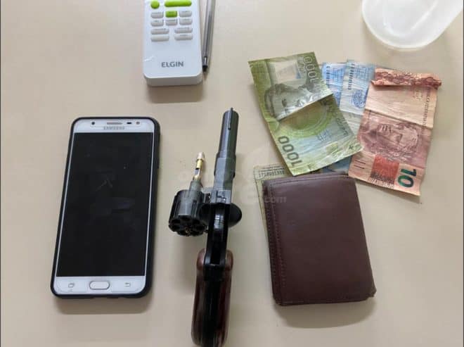 Após ser imobilizado, os policiais realizaram uma busca pela residência, onde foi encontrado cerca de 1000 pesos chilenos e uma trouxinha contendo cloridrato de cocaína, além do celular que estava usando para negociar a arma nas redes sociais.