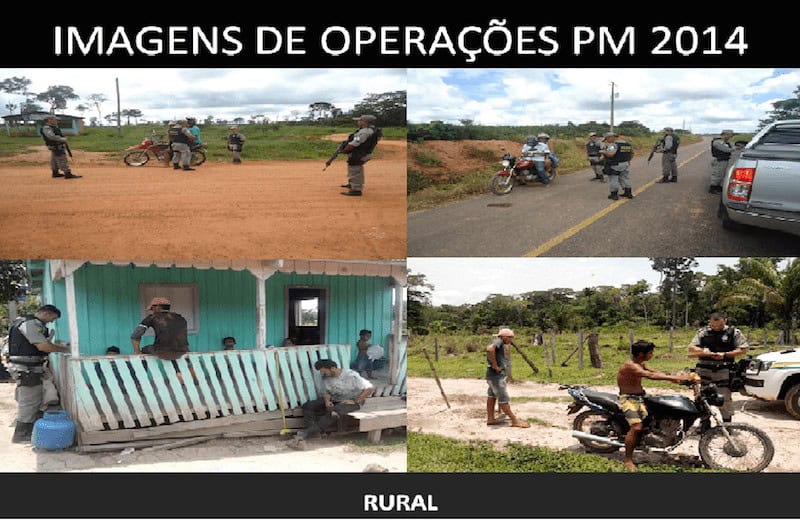 Já em relação aos indicadores operacionais, ações e operações, podemos destacar que foram realizadas 1349 ações e operações policiais militares no ano de 2014. Dentre essas podemos citar: Operação Arrastão, Boemia, Saturação, Comércio Seguro, Pagamento, Escola Segura, Trânsito Seguro, Visita Solidária, Vizinhança Solidária, ENAFRON, Festa Tranquila, Papai Noel e Rural. Foram 16.409 abordagens em pessoas a pé, de bicicleta, motocicletas, carros e outros meios de transporte. Foram 7737 abordagens a pedestres; 1267 abordagens a ciclistas; 2587 abordagens a motocicletas; 4791 abordagens a carros; 1524 bares fiscalizados; 197 comércios visitados; 327 prisões em flagrante; 448 autos de infrações de trânsito; 160 escolas visitadas; 214 testes de bafômetro; 92 menores apreendidos; 36 autos de infrações por embriaguez; 31 vítimas visitadas; 15 prisões por embriaguez ao volante; 10 indivíduos capturados com mandados em aberto; 65 armas brancas apreendidas; 09 armas de fogo apreendidas; 22 apreensão/remoção de veículos; 23 apreensões de entorpecentes; 40 palestras realizadas e 1814 ouvintes em palestras.