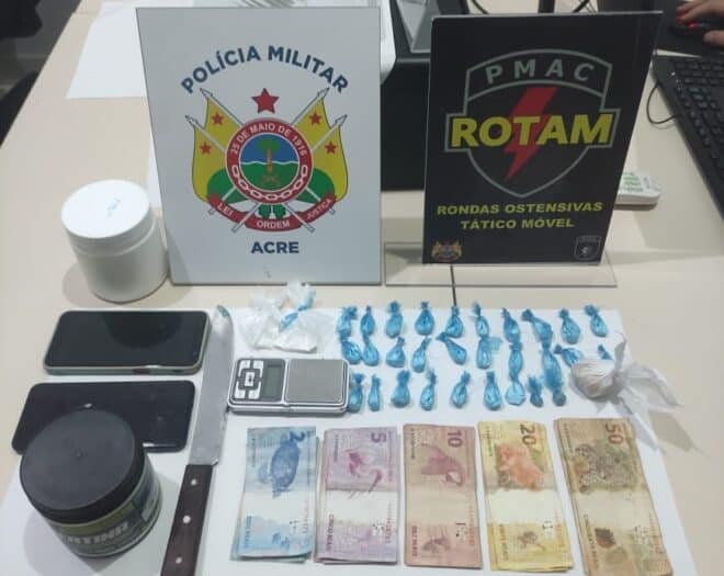 Guarnição de Rondas Ostensivas Tático Móvel (ROTAM), da Polícia Militar do Acre (PMAC), desarticulou na noite desta sexta-feira, 23, uma “boca de fumo”, no Conjunto Habitacional Cidade do Povo. Dois homens foram presos durante a ação policial.