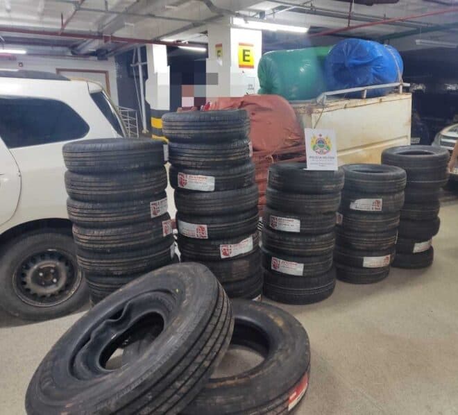 Militares do Batalhão de Policiamento de Trânsito (BPTRAN), apreenderam na madrugada desta terça-feira, 14, oitenta pneus de origem boliviana, após uma abordagem a um veículo. A prisão ocorreu no trevo de Senador Guiomard, sendo uma mulher de 37 anos presa.