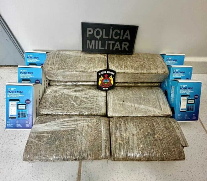 Ainda no local, foram encontradas seis máquinas de cartão de crédito, que seriam distribuídas juntamente com as drogas para as “bocadas” – pontos de venda de drogas da cidade. Os três, sendo dois homens e uma mulher, foram presos e encaminhados a Delegacia da Cidade.