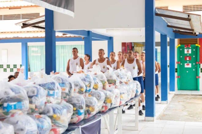 A ideia da arrecadação dos donativos surgiu da coordenação do CFSd, propôs aos seis pelotões de alunos soldados, que imediatamente toparam a proposta. Os novos militares entraram para valer na ação e participaram de todo processo desde a arrecadação, divisão, seleção e também na entrega dos sacolões.
