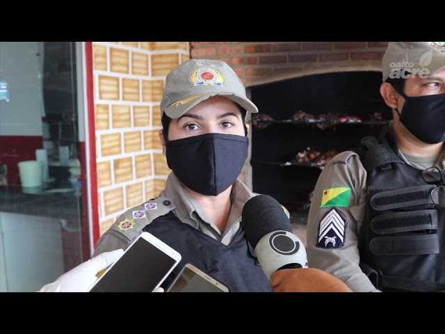 A comandante do 5º Batalhão da Polícia Militar do Alto Acre, juntamente com servidores da Vigilância Sanitária de Brasiléia, reforçou a visita nos comércios da cidade, no tocante ao uso da máscara e outros cuidados para ajudar no combate ao vírus Covid-19.