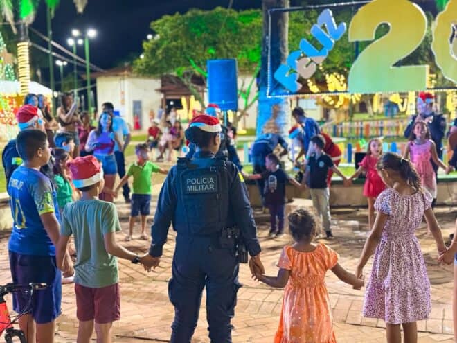 O espírito natalino tomou conta das ruas de Sena Madureira, interior do Acre, nesta segunda-feira, 22, com a realização do projeto Natal Itinerante, promovido pela Polícia Militar do Acre (PMAC), por meio do 8º Batalhão. A ação solidária levou sorrisos, esperança e momentos de acolhimento a cerca de 400 crianças em situação de vulnerabilidade social no município.