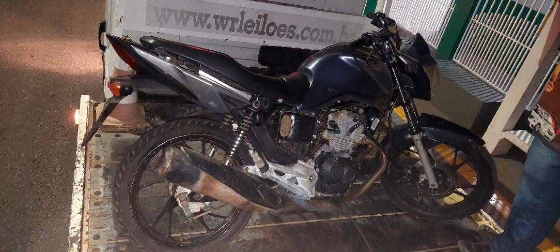 Após consulta no sistema, foi confirmado que a moto havia sido furtada dias antes. O veículo estava sem placa, sem painel, sem chave e apresentava várias peças trocadas, impossibilitando seu funcionamento.