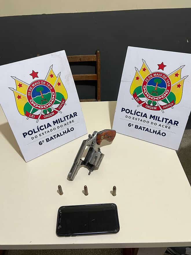 Os militares realizavam bloqueios policiais no Ramal do Havaí, nas proximidades da faixa de fronteira acreana com o Peru, quando visualizaram um indivíduo se aproximando em uma motocicleta. Quando o homem percebeu a presença dos militares tentou esconder um revólver calibre .38 dentro de suas botas, com três munições intactas.