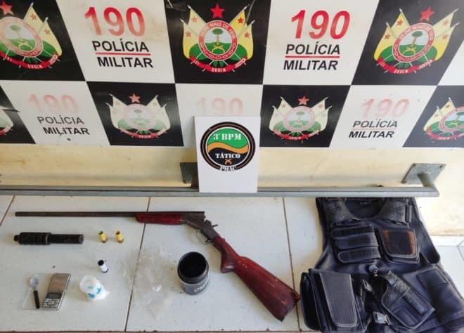 Uma ação eficiente durante patrulhamento de rotina de policiais do grupo Tático do Terceiro Batalhão de Polícia Militar (3° BPM), resultou na prisão de um homem de 31 anos, com uma espingarda, uma capa tática de colete, entorpecentes e ainda silenciador de arma de fogo. Ação policial ocorreu na tarde desta quarta-feira, 17, no bairro Tancredo Neves, em Rio Branco.