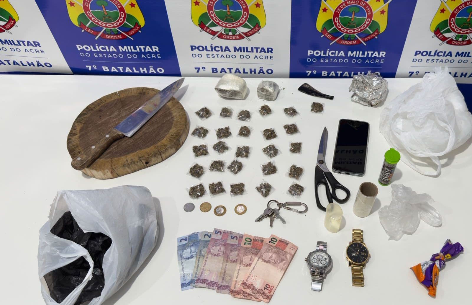A Polícia Militar do 7º Batalhão prendeu um homem e apreendeu uma quantidade significativa de drogas durante ação realizada no bairro Senador Pompeu, em Tarauacá. A operação foi deflagrada após a corporação receber denúncias de que o suspeito estaria comercializando entorpecentes em sua própria residência.