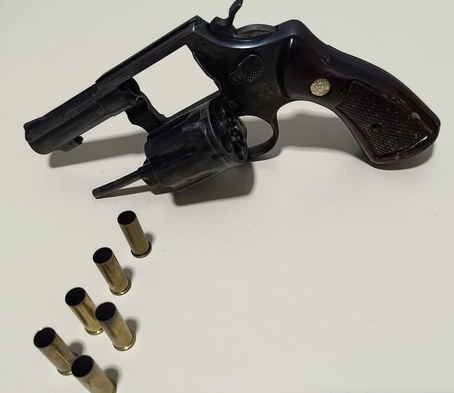 Ao se aproximarem do endereço indicado, os militares visualizaram um homem que correspondia às características informadas. Imediatamente realizaram a abordagem e, durante a revista, encontraram com ele um revólver calibre .38, com seis munições deflagradas. O suspeito foi preso em flagrante e encaminhado à Delegacia de Flagrantes junto com a arma apreendida.