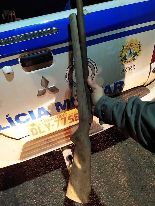 Corpo de uma espingarda sem cano foi localizado com o acusado e era usada para ameaçar moradores do bairro.