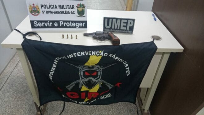 Revólver apreendido na zona urbana da cidade de Epitaciolândia.