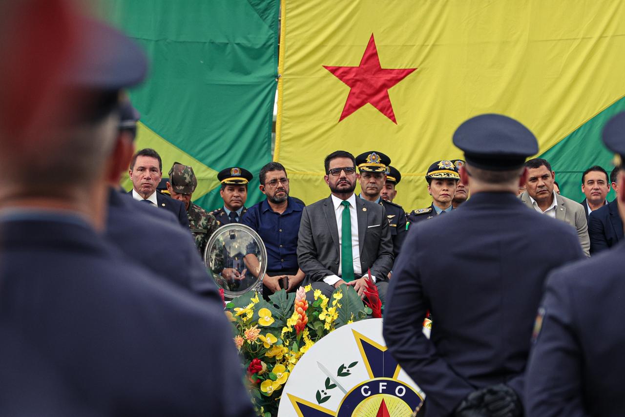 Durante seu pronunciamento, o governador Gladson Camelí ressaltou o orgulho que sente pela corporação e destacou o papel fundamental da Polícia Militar na proteção da população acreana.