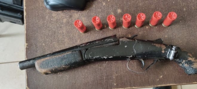 Durante a busca pessoal foi localizada uma espingarda, calibre 16, com sete cartuchos não deflagrados. O homem, que é foragido da justiça, ainda durante a abordagem confessou autoria em homicídio cometido no bairro, no dia 30 de janeiro do corrente ano.