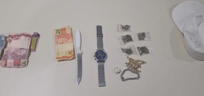 Com eles foram encontrados entorpecentes, uma arma branca e outros objetos de interesse policial. Foto: captada