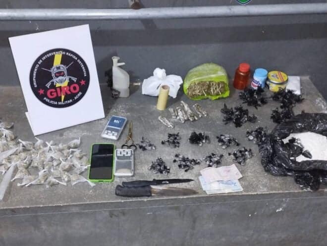 Cerca de mil e seissentos gramas de drogas, entre cocaína e maconha, além de objetos utilizados para confecção e venda do ilícito, foram apreendidos. A ocorrência foi encaminhada para a delegacia local para as demais providências.