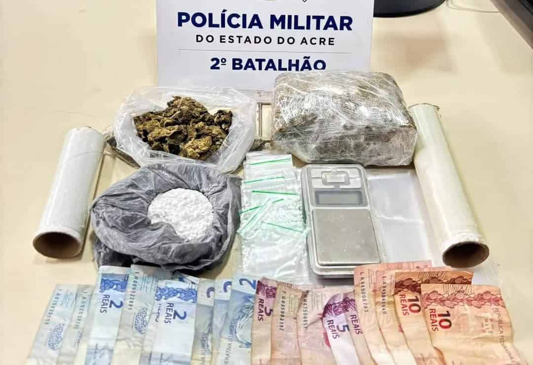 Já no interior do Beco Sobradinho, os militares sentiram um forte odor característico de maconha. Ao se aproximarem, flagraram o suspeito sentado em uma mesa, atrás de uma casa, embalando os entorpecentes para venda.