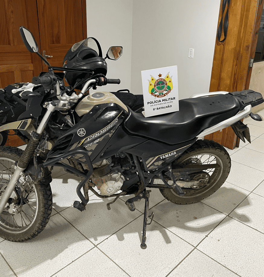 Em uma ação rápida e eficaz, a Polícia Militar de Sena Madureira recuperou uma motocicleta Yamaha Crosser XTZ 150, de cor preta, que havia sido furtada no bairro da Pista durante o último fim de semana. O veículo foi levado de dentro de uma residência, mas foi localizado pouco tempo depois, após intensas buscas realizadas pela equipe policial.