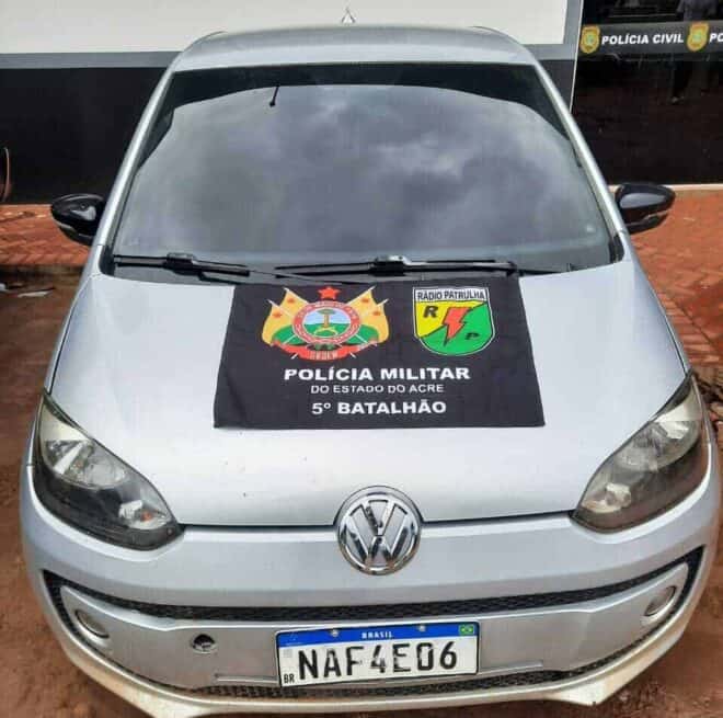 Na tarde desta terça-feira (19), a Polícia Militar realizou a interceptação de um veículo com restrição de furto que circulava pela região de fronteira entre Brasileia, Epitaciolândia e Cobija. O carro, um Volkswagen UP de cor prata e placa NAF4E06, foi localizado na Avenida Internacional, nas proximidades da fronteira com o departamento de Pando.